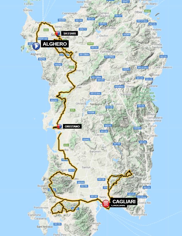 | 16/07 | Friday | Stage 3 | Oristano - Cagliari | 180.9 | |