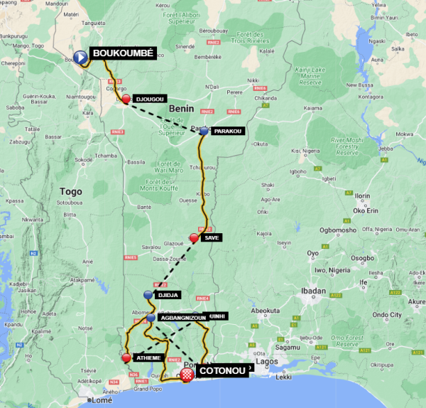 | 30/04 | Tuesday | Stage 1 | Boukoumbé - Djougou | 125.8 | |