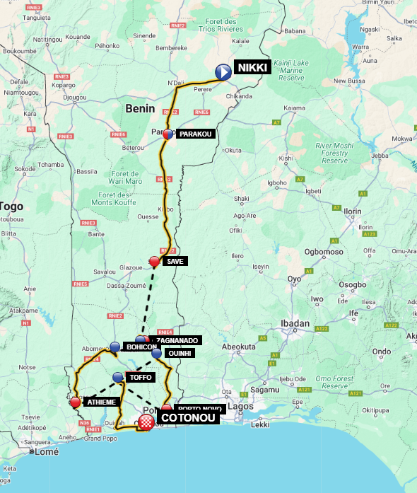 | 02/05 | Friday | Stage 5 | Ouinhi - Porto-Novo | 107.5 | |